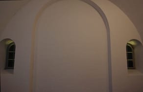 Taborkirche Emporenrückwand mit zwei Fenstern